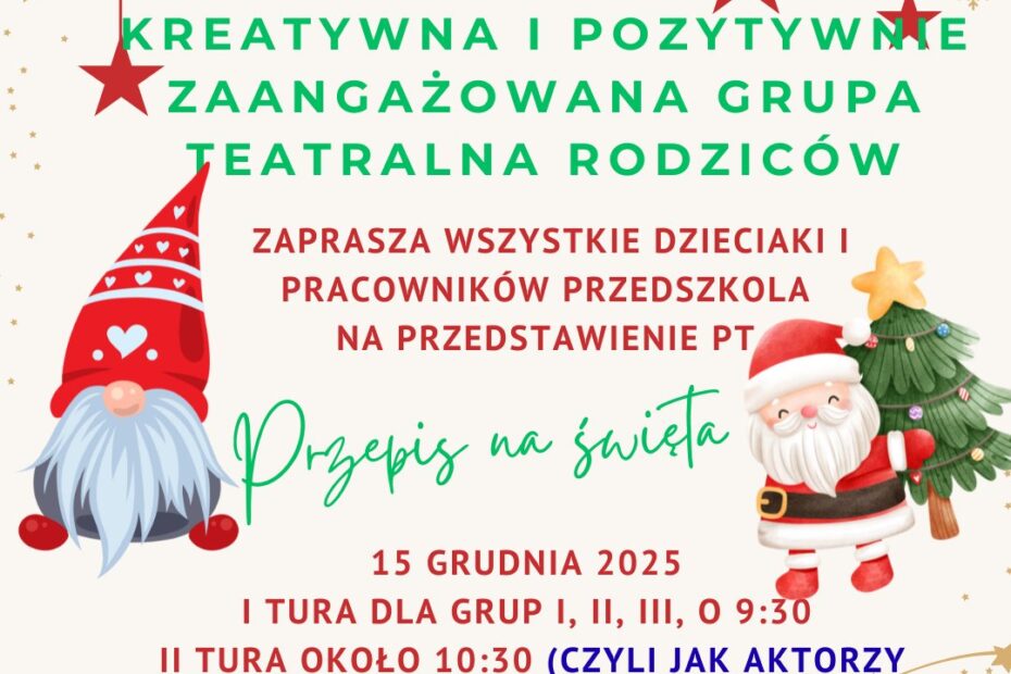 Kochani Rodzice, z całego serca dziękujemy za przepiękne, wzruszające przedstawienie „Przepis na Święta”. Była to wyjątkowa opowieść pełna ciepła, uśmiechu i świątecznej magii, która na… Dowiedz się więcej »„Tam, gdzie są dzieci i ludzie z sercem, tam zawsze jest dom.”