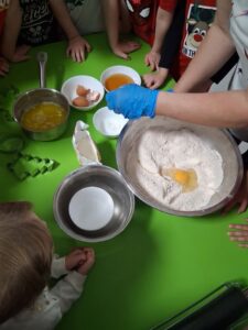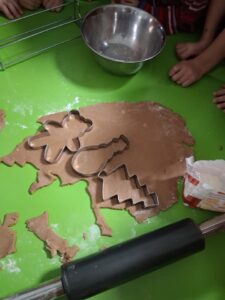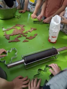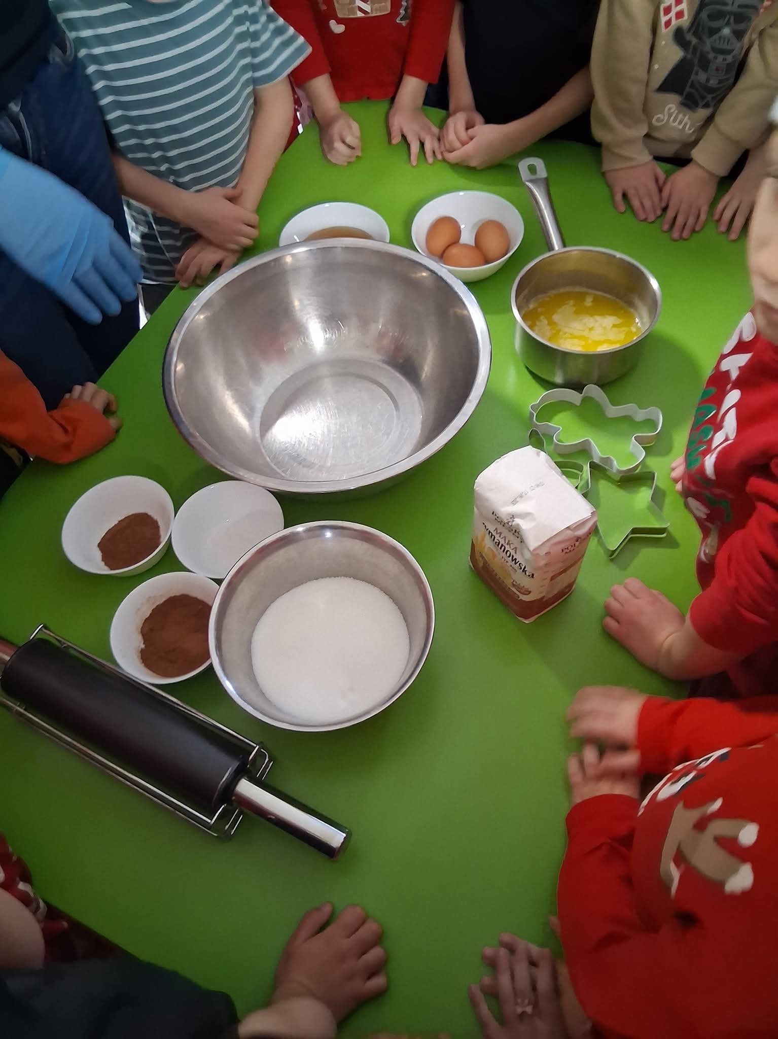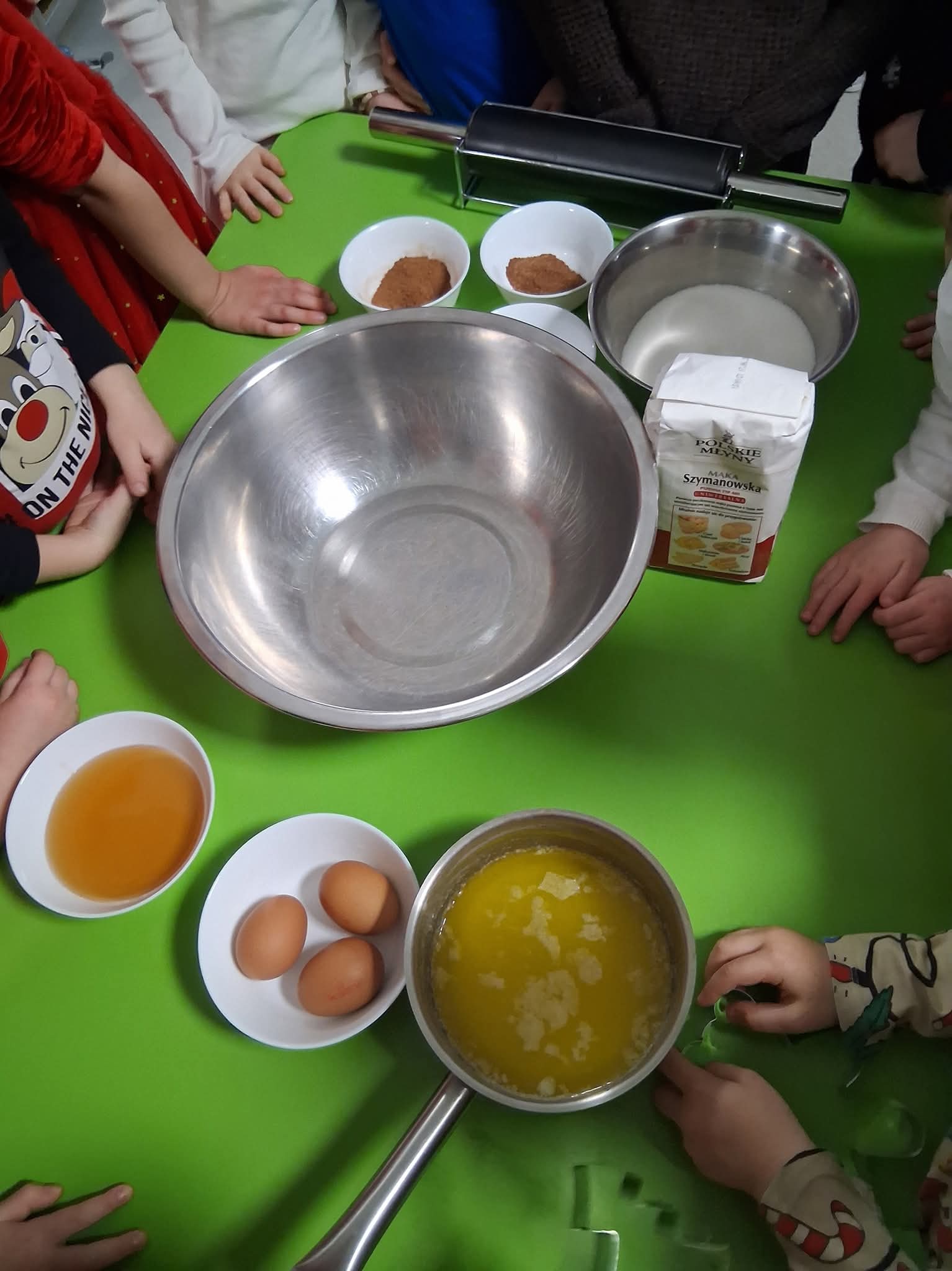 W naszym przedszkolu odbyły się wyjątkowe warsztaty pierniczkowe, które wypełniły sale cudownym zapachem korzennych przypraw i świąteczną magią. Dzieci z ogromnym zaangażowaniem uczestniczyły w całym procesie przygotowywania pierników – od zagniatania ciasta, przez wałkowaniewycinanie foremkami, aż po pieczenie.