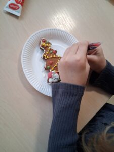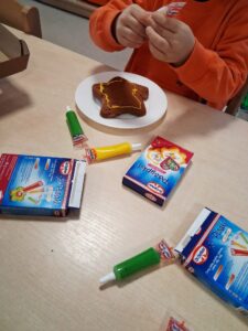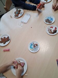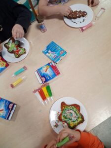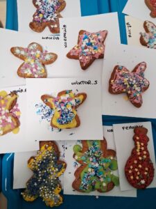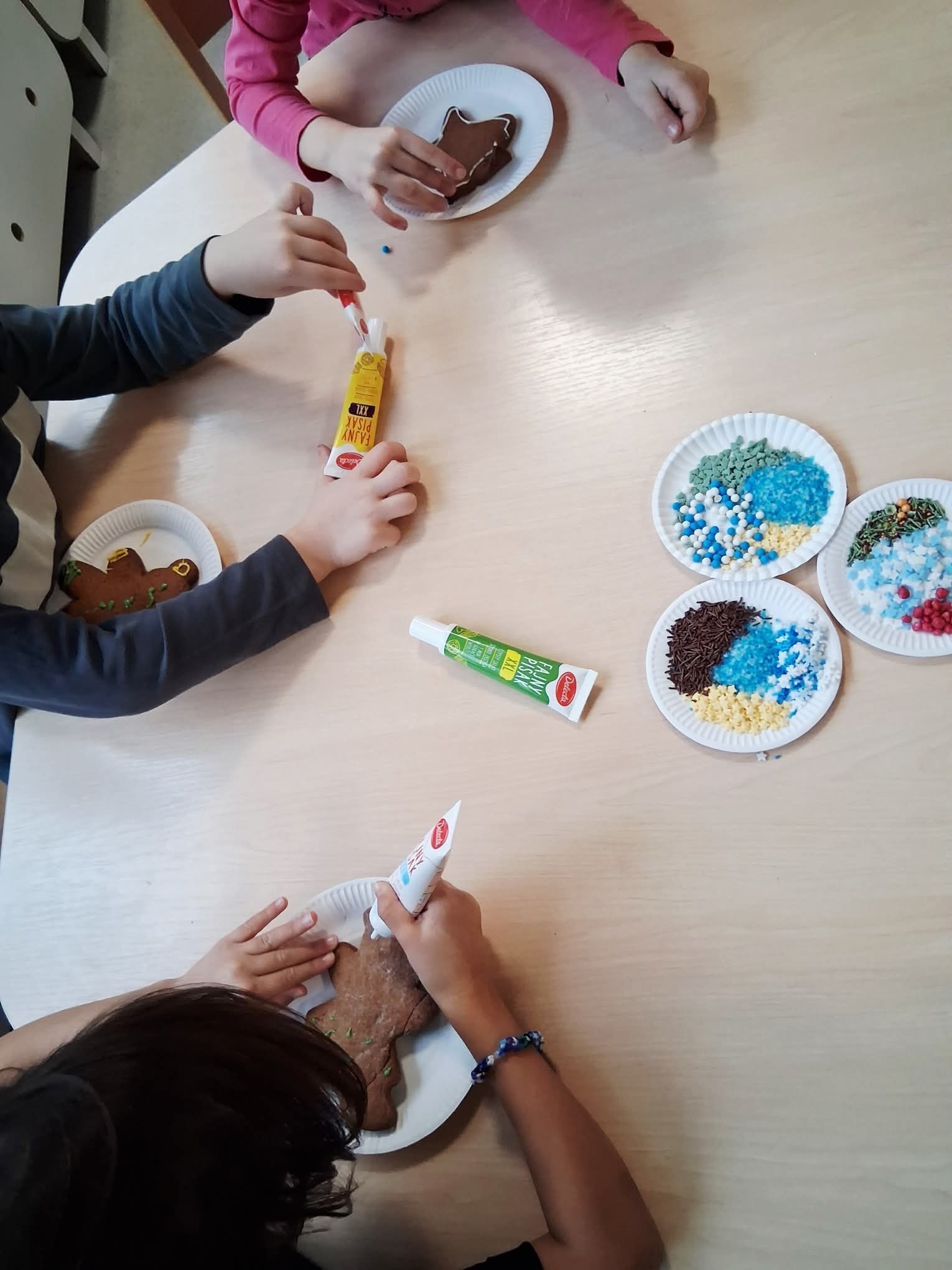 Najwięcej radości sprawiło ozdabianie pierniczków, podczas którego mali cukiernicy mogli dać upust swojej wyobraźni i kreatywności. Kolorowe lukry, posypki i uśmiechy na twarzach dzieci sprawiły, że atmosfera była naprawdę wyjątkowa.